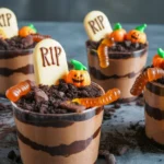 The fun thing is, there’s no strict recipe. Basically, if you can turn a snack chocolatey and spooky, you’re golden. Kids honestly love smashing cookies and drawing “RIP” on cookies with messy icing. I mean, who could blame them? It’s pure edible fun, and the graveyard chocolate pudding cups have sort of become a Halloween icon, at least in every school I’ve been part of.